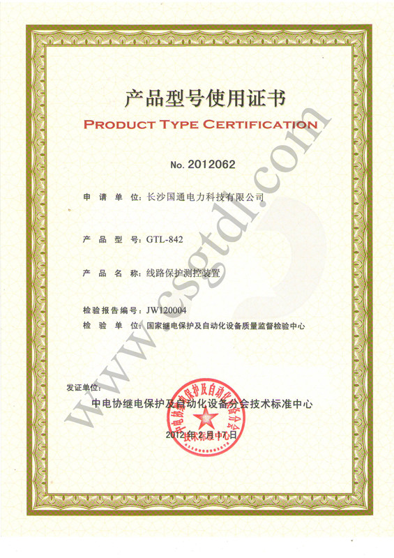 - 產(chǎn)品型號(hào)使用證書(shū)